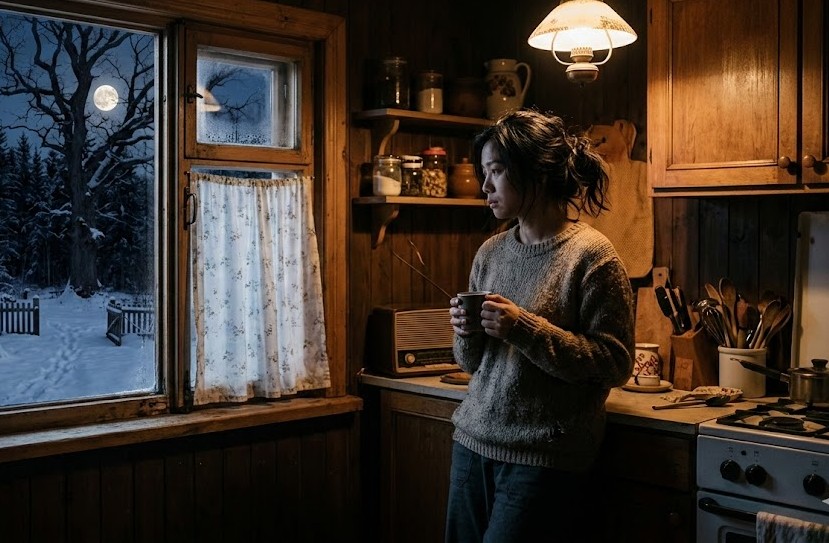Không có lời đáp, nhưng có tiếng lạo xạo của bước chân giẫm lên tuyết mới. Vy như bị hút về hướng đó, cô giơ cao cây đèn rồi bước tiếp. Khi nhìn thấy dấu chân đầu tiên, một luồng lạnh chạy dọc sống lưng cô, không hẳn là sợ hãi, mà giống cảm giác khi đứng trước con đường một chiều không thể quay đầu. Vy siết chặt tay cầm đèn, tay kia ép chặt vào ngực, rồi cô bước thêm một bước nữa, dấn thân vào bóng tối.
